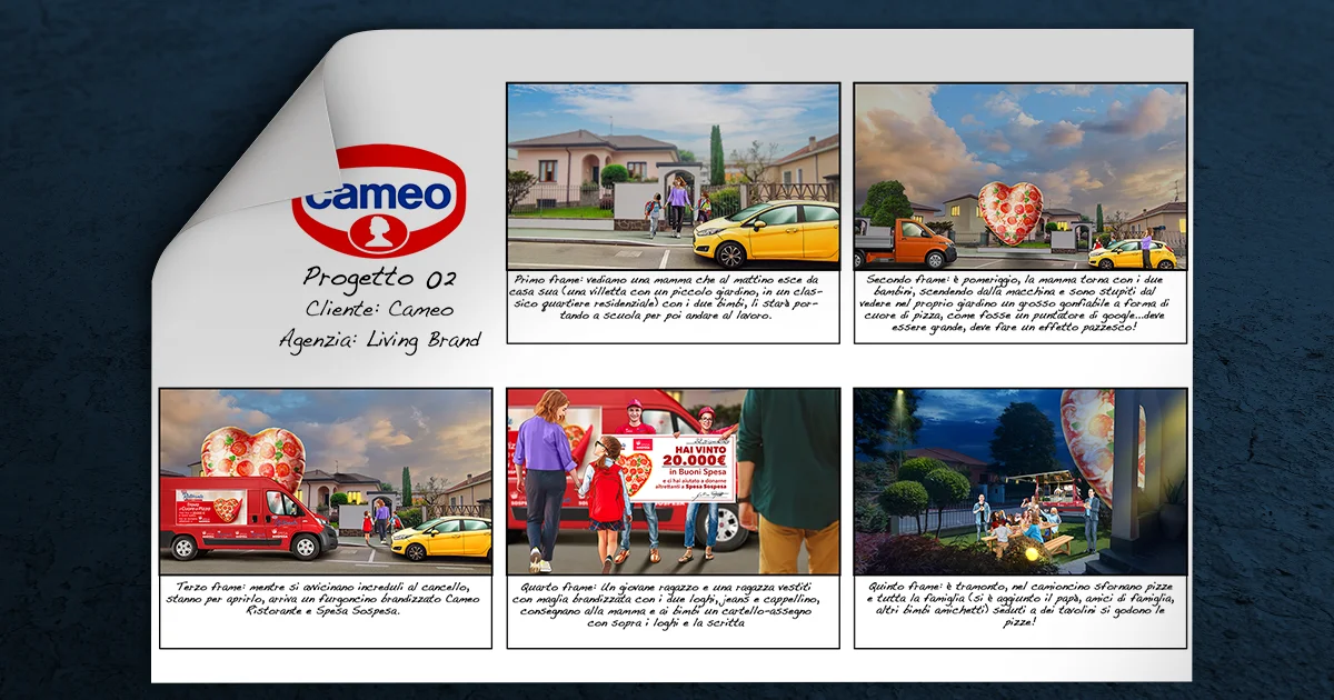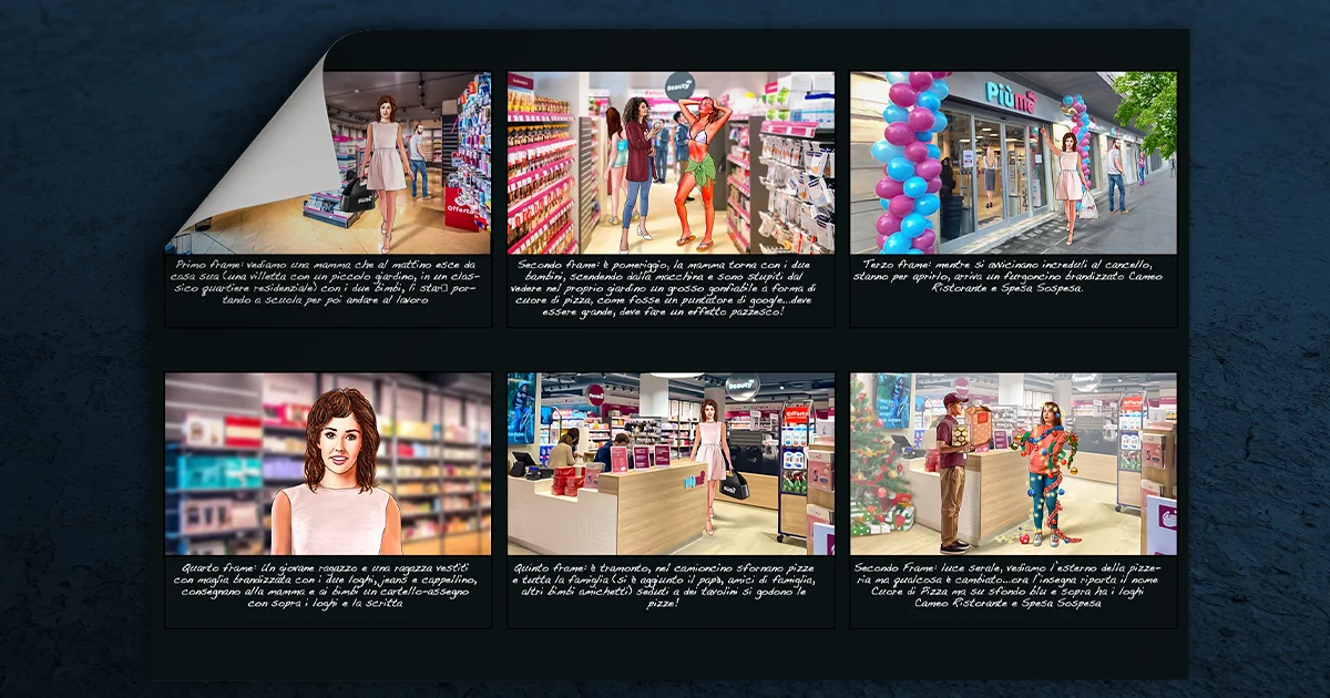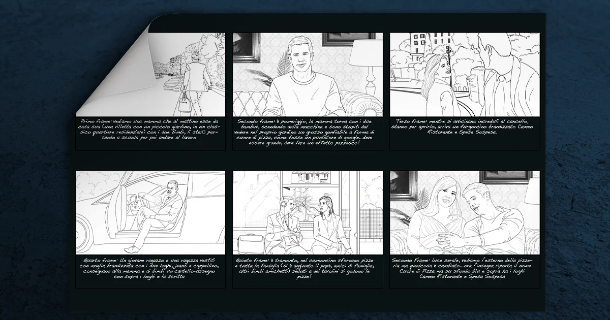 StudioPigna realizza storyboard pubblicitari per agenzie di comunicazione, case di produzione e direttori creativi, progettando sequenze visive pensate per spot e video efficaci. Ogni storyboard è studiato per raccontare la storia del brand, guidare la regia e facilitare la produzione audiovisiva.
